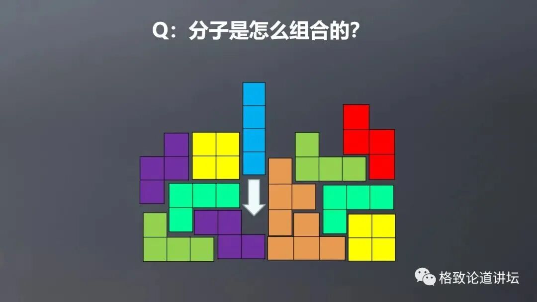 它的构成首先就是原子形成这四个碱基对的过程,是一次小型的“俄罗斯方块”。