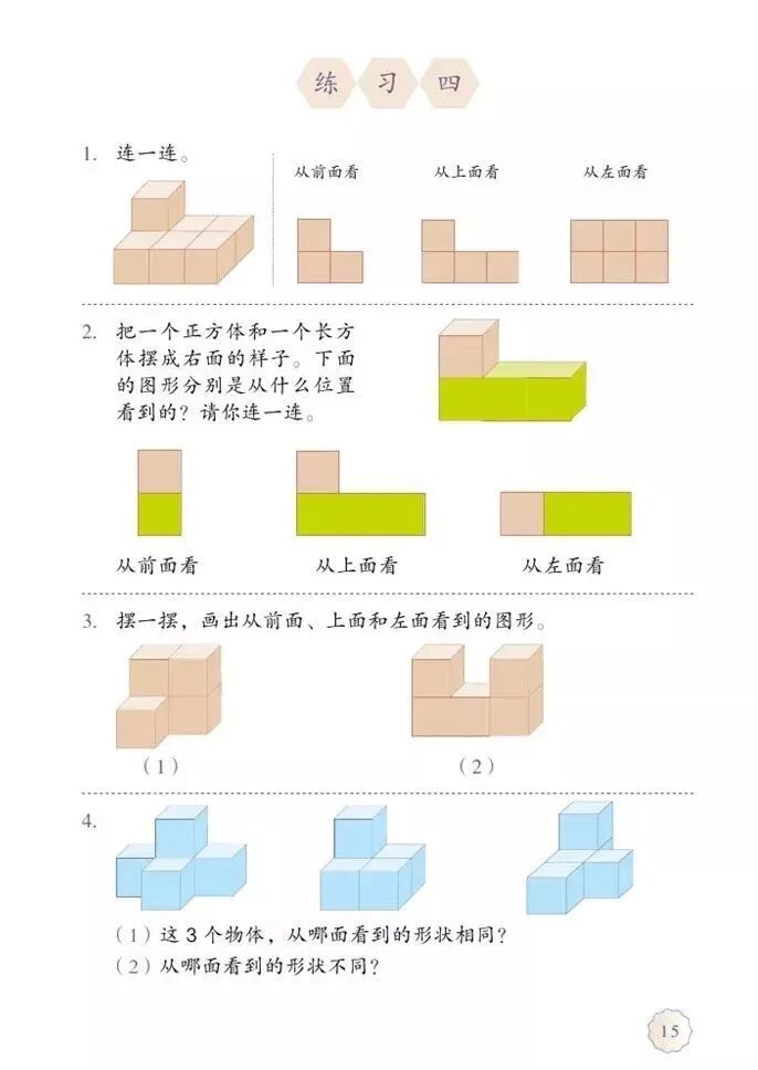 到后面有更多形状的立体图形,有三棱锥、四棱锥、楔体、三棱柱等规则的立体图形。