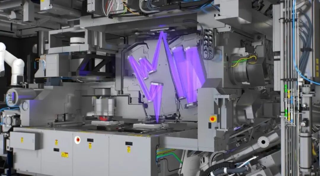 EUV,全称Extreme Ultra Violet,也就是极紫外光,它这是最新的第五代光刻机使用的光源。这两年大家或许经常听到“光刻机”这个词,那么光刻又是怎么一回事?简单来说,光刻就是在硅片表面,覆盖一层具有高度光敏感性的光刻胶,再用光线,一般是紫外光、深紫外光、以及我们刚刚提到的极紫外光,透过掩模照射在硅片表面,被光线照射到的光刻胶会发生反应。再特定溶剂洗掉光刻胶,电路图就留在硅片上了。然后再经过各种测试、封装,一颗处理器才算诞生了。