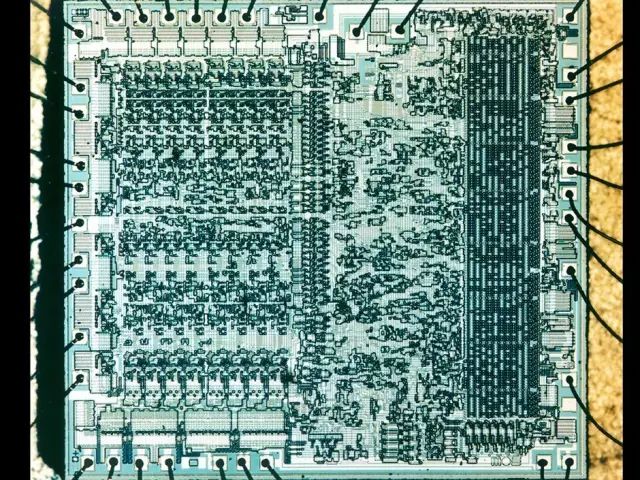 巴丁 (左)、布拉顿 (右) 和肖克利因为晶体管的发明,共同获得了1956年的诺贝尔物理学奖从实用的角度看,点接触式晶体管的产量非常有限,不能算是商业上的成功;但它的发明意义重大,巴丁、布拉顿和肖克利也因此获得了1956年的诺贝尔物理学奖。晶体管被誉为“20世纪最伟大的发明”,它的出现为集成电路、微处理器以及计算机内存的产生奠定了基础。20世纪五六十年代,肖克利在推动晶体管商业化的同时,造就了如今加州电子工业密布的硅谷地区。晶体管发明的历史非常复杂,牵扯到科学和技术、团体和社会之间的微妙关系。现如今,从播放音乐、合成语音、存储数据、数码摄影、GPS定位到传输和处理互联网上的海量数据,我们的日常生活中芯片已经成为不可或缺的产品。这其中,有一些芯片直接或间接地为改变世界的一些产品赋能,影响了整个计算世界。就在晶体管诞生71周年的今天,让我们一起来回顾这些伟大的芯片,并讲述它们背后的人和故事。以下内容来自 IEEE Spectrum 2018年最新的“芯片名人堂” (Chip Hall of Fame)。Fairchild Semiconductor μA741 Op-Amp该芯片成为了模拟放大器集成电路事实上的标准。该芯片目前仍在生产,在电子产品中随处可见。运算放大器就像模拟设计界的切片面包。你可以用它们夹上任何东西,并且都能得到满意的结果。设计者使用它们来制作音频或视频的前置放大器,电压比较器,精密整流器,以及其他许多日常电子系统中重要的子系统。1963年,26岁的工程师 Robert Widlar 在仙童半导体公司(Fairchild Semiconductor)设计了第一个单块集成运算放大器电路,即 μA702。当时它的售价是300美元。Widlar 随后对设计进行了改进,设计出 μA709,并获得了巨大的商业成功。据说,Widlar 因此要求加薪,但没有得到满足,于是离开了仙童半导体。美国国家半导体公司(现在是德州仪器的一部分)如获至宝,迅速挖来了 Widlar。Widlar 后来帮助国家半导体建立了模拟IC设计部门。1967年,Widlar 为国家半导体公司研发出一个更好的运算放大器,即 LM101,其中一个版本(LM101A-N )现在仍在生产。虽然仙童半导体的领导们对 Widlar 突然发起的竞争感到焦头烂额,但在仙童的研发实验室,新加入的 David Fullagar 对 LM101 进行了仔细的检查,发现这款芯片的设计虽然非常巧妙,但还是存在一些缺陷。其中最大的缺陷是,由于半导体质量的变化,有些芯片在IC的输入级,即所谓的前段,对噪声过于敏感。Fullagar 于是开始了自己的设计。前端问题的解决方案非常简单,Fullagar 为芯片增加了一对额外的晶体管。额外的电路使得放大更加平滑。Fullagar 将他的设计交给仙童研发部门的老大,一位名叫戈登·摩尔 (Gordon Moore) 的人。摩尔将他的设计交给公司的商业部门。这枚新的芯片被命名为 μA741,后来成为运算放大器的标准。这个 IC,以及后来仙童半导体的竞争对手所创造的各种翻版型号,已经卖出数百万个。当时初版的μA702价格是300美元,现在300美元大约可以买2000枚μA741芯片。Intersil ICL8038 波形发生器(1983)