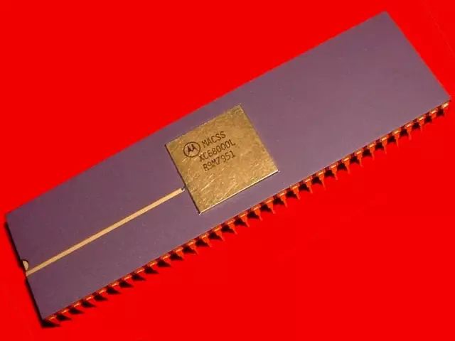 Motorola MC68000 Microprocessor该处理器驱动了最早的苹果 Macintosh,以及可爱的Amiga 计算机。16位的微处理器的派对上,摩托罗拉姗姗来迟,所以它决定高调亮相。混合16位/ 32位的MC68000封装在68,000个晶体管中,是英特尔8086的两倍以上。它内部是一个32位处理器,但32位地址和/或数据总线本可能使其成本大涨,所以68000使用了24位地址和16位数据线。 68000似乎是使用铅笔和纸张设计的最后一个主要处理器。设计了68000逻辑的Nick Tredennick说:“我将缩减的流程图副本、执行单元的资料、解码器和控制逻辑分发给了其他项目成员。”这些副本很小,难以阅读,他的同事们最终找到了一种方式显示清楚。“有一天我来到我的办公室,发现我桌子上放着信用卡大小的流程图副本。”Tredennick回忆说。 68000 用于所有早期的Macintosh电脑,以及Amiga和Atari ST。大量销量也来自激光打印机、街机游戏和工业控制器的嵌入式应用。但是,68000也经历了历史上最大的错失良机,就如同当时 Pete最终失去了他作为甲壳虫乐队鼓手的地位。 IBM本想在其PC系列中使用68000,但后来还是用了英特尔的8088,因为当时68000还比较少。正如一位观察家后来所说,如果当时用了摩托罗拉的68000,Windows-Intel形成的 Wintel 可能就会是Winola 了。金盖下面是一个32位处理器,但是连接它和外部世界的封装内,只有16位数据引脚。照片:Arnold ReinholdSun Microsystems SPARC处理器(1987)