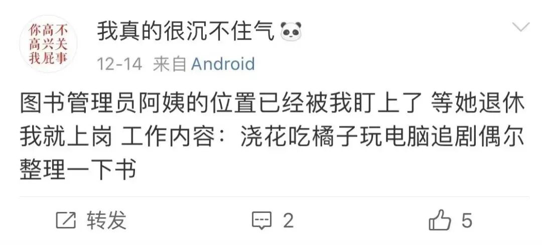 刚考上图书管理员事业编的豆友@承太郎老婆有些迷茫,对有人说“图书管理员是毕生梦想”感到不解: