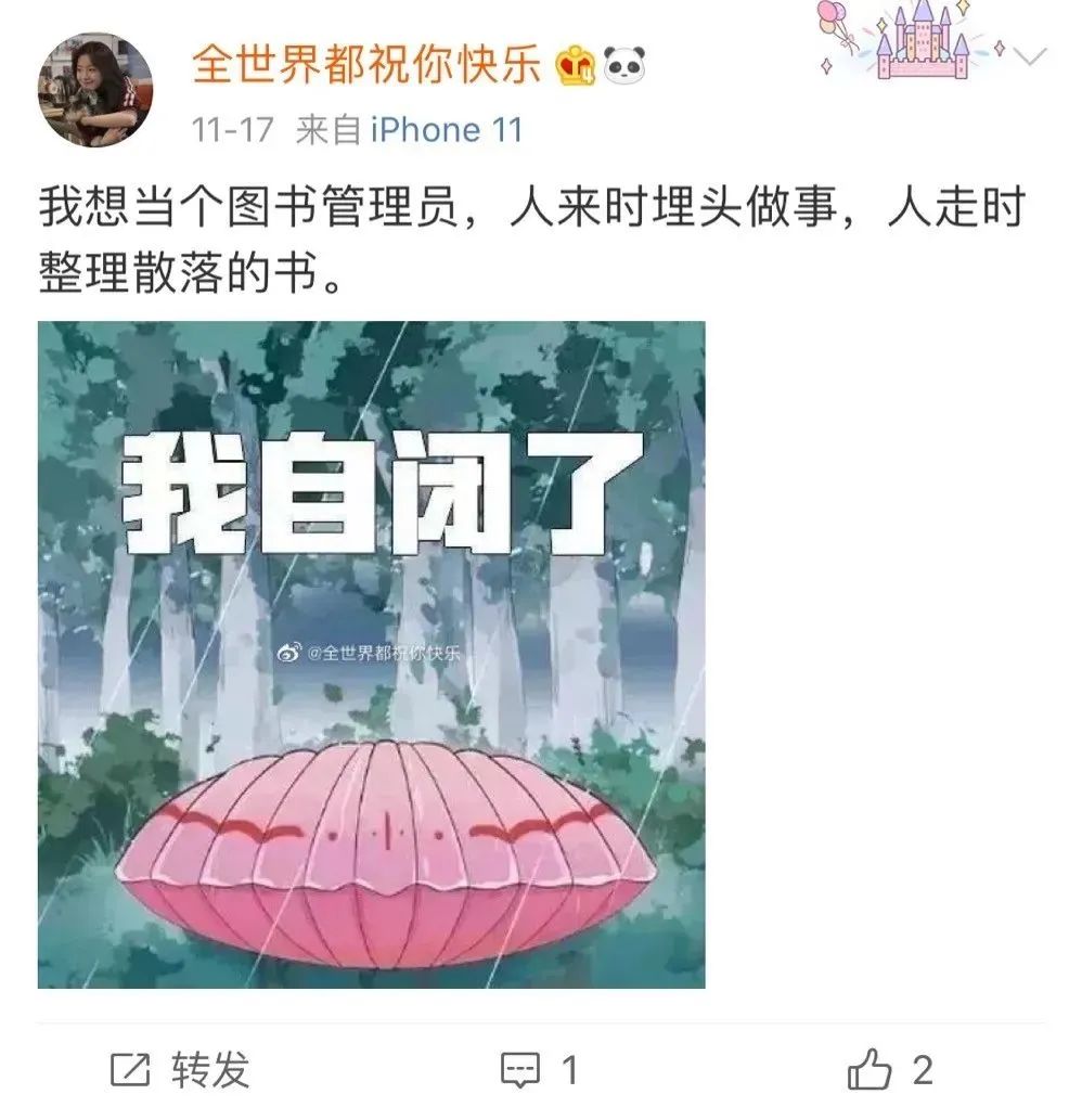 真正以图书管理员工作为目标的也大有人在,只是,在内卷的高压、快节奏生活下,很多人把图书管理员幻想为人生理想,或许只不过是对适度喘息的渴求。