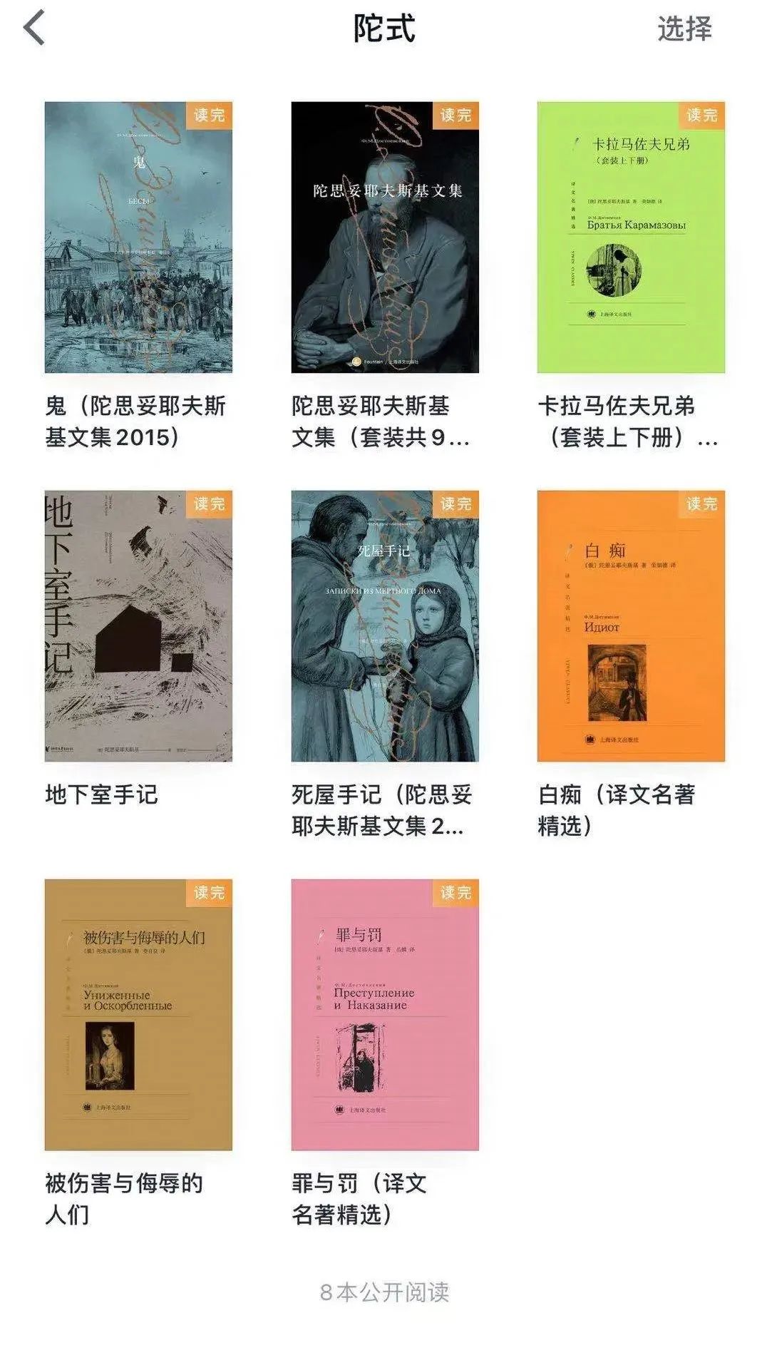 九月份,豆友@爱思考的浣熊 完成了陀思妥耶夫斯基的文集打卡。/受访者供图