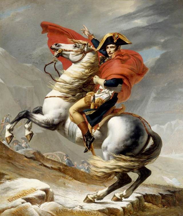 不论是带领军队跨越阿尔卑斯山,还是迎娶王妃的婚礼上,都可以看到他腿着丝袜的场景。跨越阿尔卑斯山圣伯纳隧道的拿破仑 图片来源:Wiki