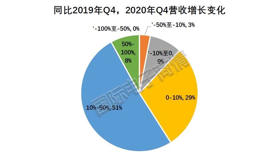 从Q4终端制造厂商和分销商的营收同比增长情况(图8)来看,88%的企业营收出现正增长,仅12%的企业营收出现负增长,负增长50%-100%的企业占比已降为0。