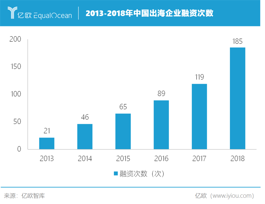 根据亿欧智库发布的《2019金融科技出海报告》,中国有近百家投资机构为“出海”金融科技公司提供资金支持,近5年来,融资次数逐渐攀升,由2013年的21次增长到2018年的185次。资本加注带来的国内金融科技出海热潮已经形成。
