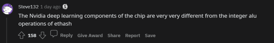 当然,很多人都在问这个问题,但解决方案没有那么简单。创建一种通用算法来限制挖矿行为理论上是可行的,但存在一个很严重的障碍:如何区分挖矿和可能看起来像挖矿但实际上属于其他用途的 GPU 负载?如机器学习、密码学和 Adobe 全家桶的图形化工作。可能也是考虑到这一点,英伟达将限制的范围定得非常窄。虽然英伟达施加的限制非常有限,但部分 AI 领域的研究者还是担心:这一限制会影响深度学习「炼丹」性能吗?在这一问题的讨论中,大部分人认为不会,因为深度学习和被限制的挖矿算法存在非常大的差异。