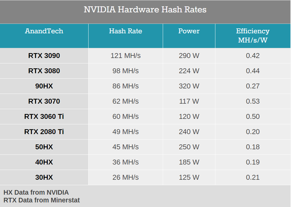 当然,在限制挖矿的同时,英伟达也给出了「疏导」措施,推出了专门用于以太坊挖矿的 GPU——CMP HX。英伟达在博客中介绍称,CMP 系列产品不做图形处理,但针对最佳的采矿性能和效率进行了优化。此外,CMP 没有显示输出,改善了加密货币挖矿工作时的空气流通,使其可以更好的适应矿机更加密集的空间。CMP 还拥有更低的核心峰值电压和频率,从而提升加密货币挖矿功效。不过,在看了 CMP HX 系列产品的各项参数之后,很多人都大失所望:如果价格不够有竞争力,如果限制能够破解,谁会买这些新卡?