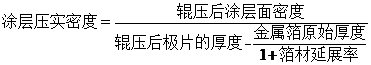 而考虑到极片辊压时,金属箔材存在延展,辊压后涂层的面密度通过下式计算: