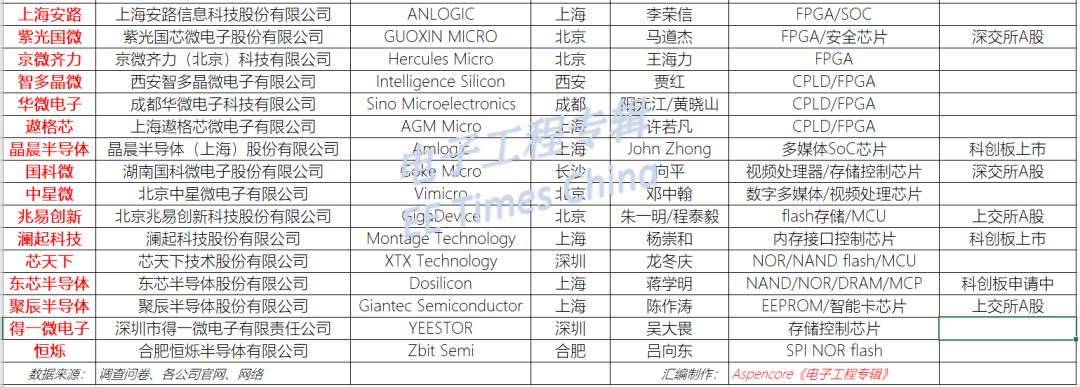 国产Fabless存储厂商:兆易创新、东芯、芯天下、聚辰、恒烁半导体