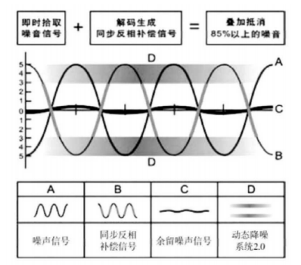 主动降噪技术,也叫有源降噪,是利用麦克风采样环境噪声,经过数据处理后发出与噪声相位相反的声波来抵消噪声。