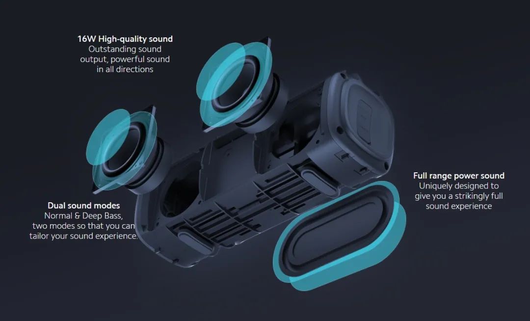 该款产品支持 IPX7 级别的防水,可以抵抗轻度雨水以及泼溅。该款产品还支持 AUX 有线音频输入,可搭载麦克风支持语音助手以及通话功能。